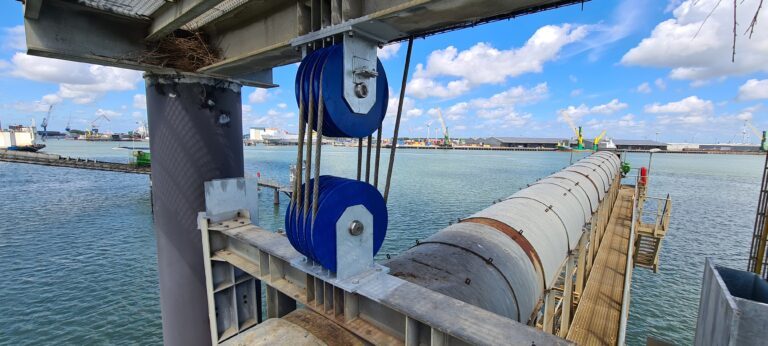 Das Lager- und Umschlagunternehmen DBM Vlissingen-Oost beauftragte sie mit der Modernisierung eines Förderbandes zum Beladen von Binnenschiffen mit Sand, Steinen und Kies. „Die Höhe des Bandes relativ zum Schiff musste verstellbar sein, um sich an die Schiffsgröße und die Gezeiten anzupassen. Ein Windensystem war erforderlich, um das Förderband anzuheben oder abzusenken. Der Kapitän bedient das Band.“