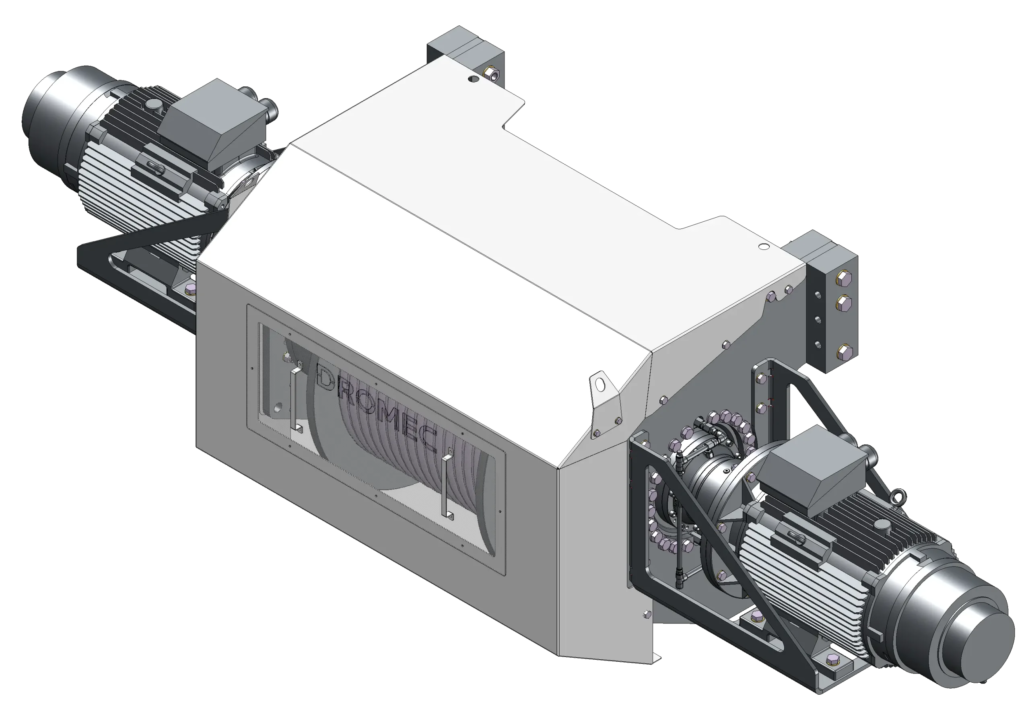 Ampelmann setzte bisher hauptsächlich auf Hydraulikantriebe mit einem großen Hydraulikaggregat für Zylinder und Winden. Angesichts der zunehmenden Bedeutung von Nachhaltigkeit und Energieeffizienz wandte sich Ampelmann an die Ingenieure von DROMEC Winches, um gemeinsam eine nachhaltigere Lösung zu entwickeln. Dies führte zur Elektrifizierung von drei Windensystemen und resultierte in einer Reduzierung des Nettostromverbrauchs um 10 % im Vergleich zur ursprünglichen Leistung – eine signifikante Einsparung für die 31 Meter lange Gangway.