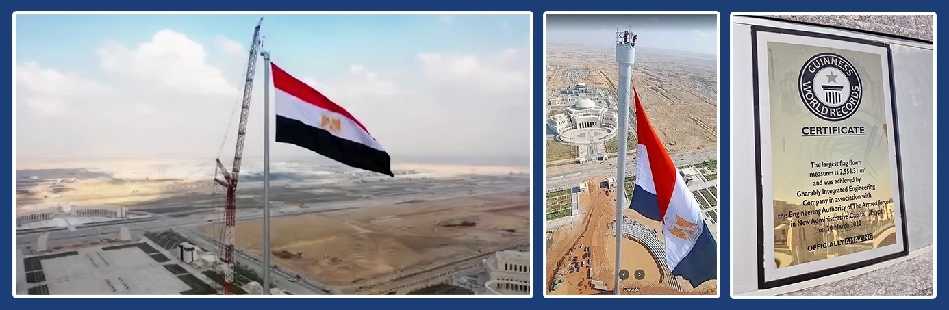 Der Standort der Flagge ist Kairo, die neue Verwaltungshauptstadt. Der Fahnenmast ist im Guinness-Buch der Rekorde verzeichnet.